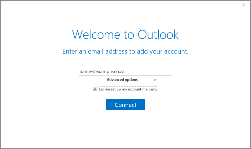 - Select Advanced options, then select Let me set up my account manually > Connect